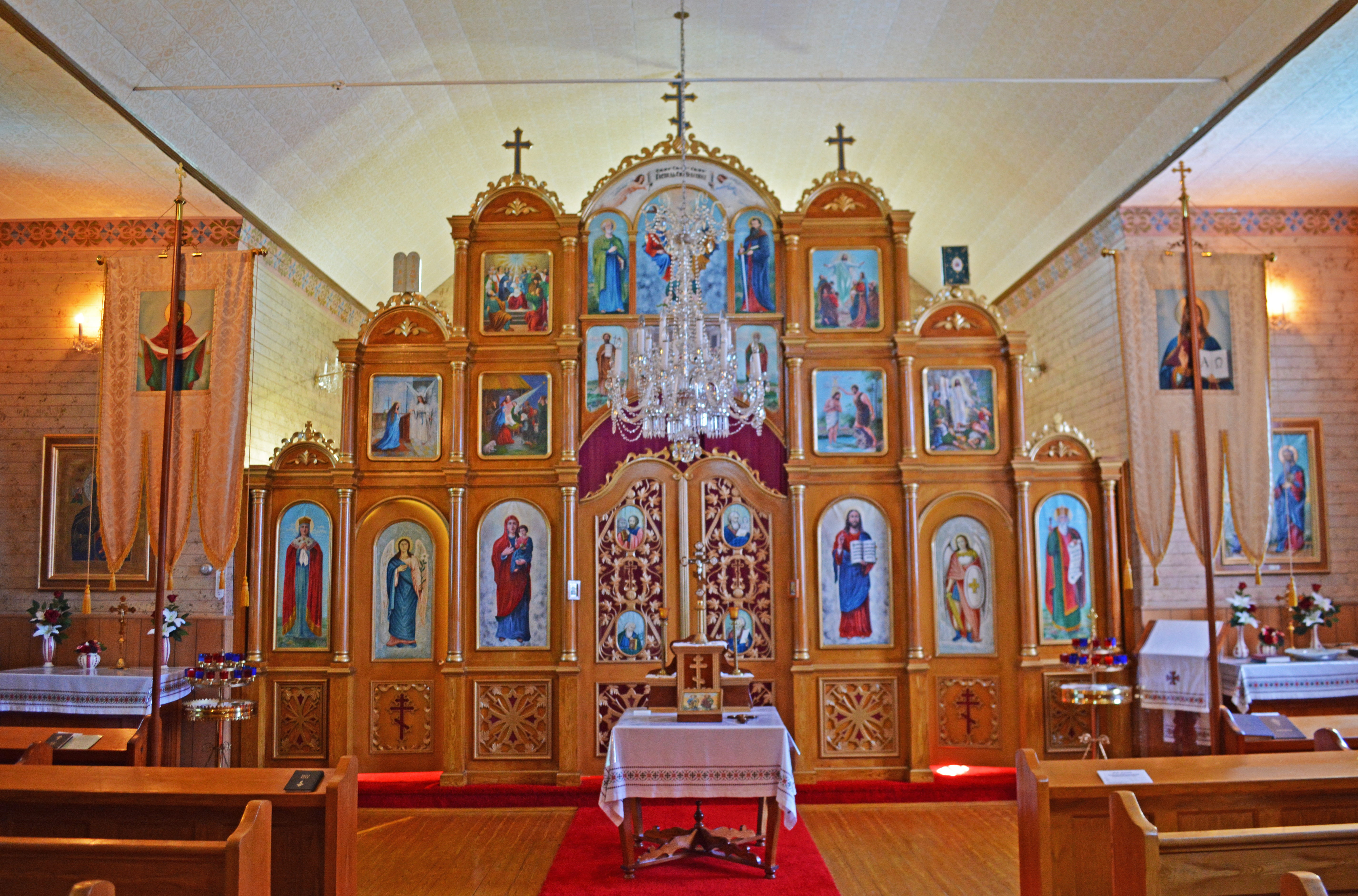 Image of the interior of Sts. Peter & Paul UOC located in Glaslyn, SK. Photo by S. Demchinsky (2017).