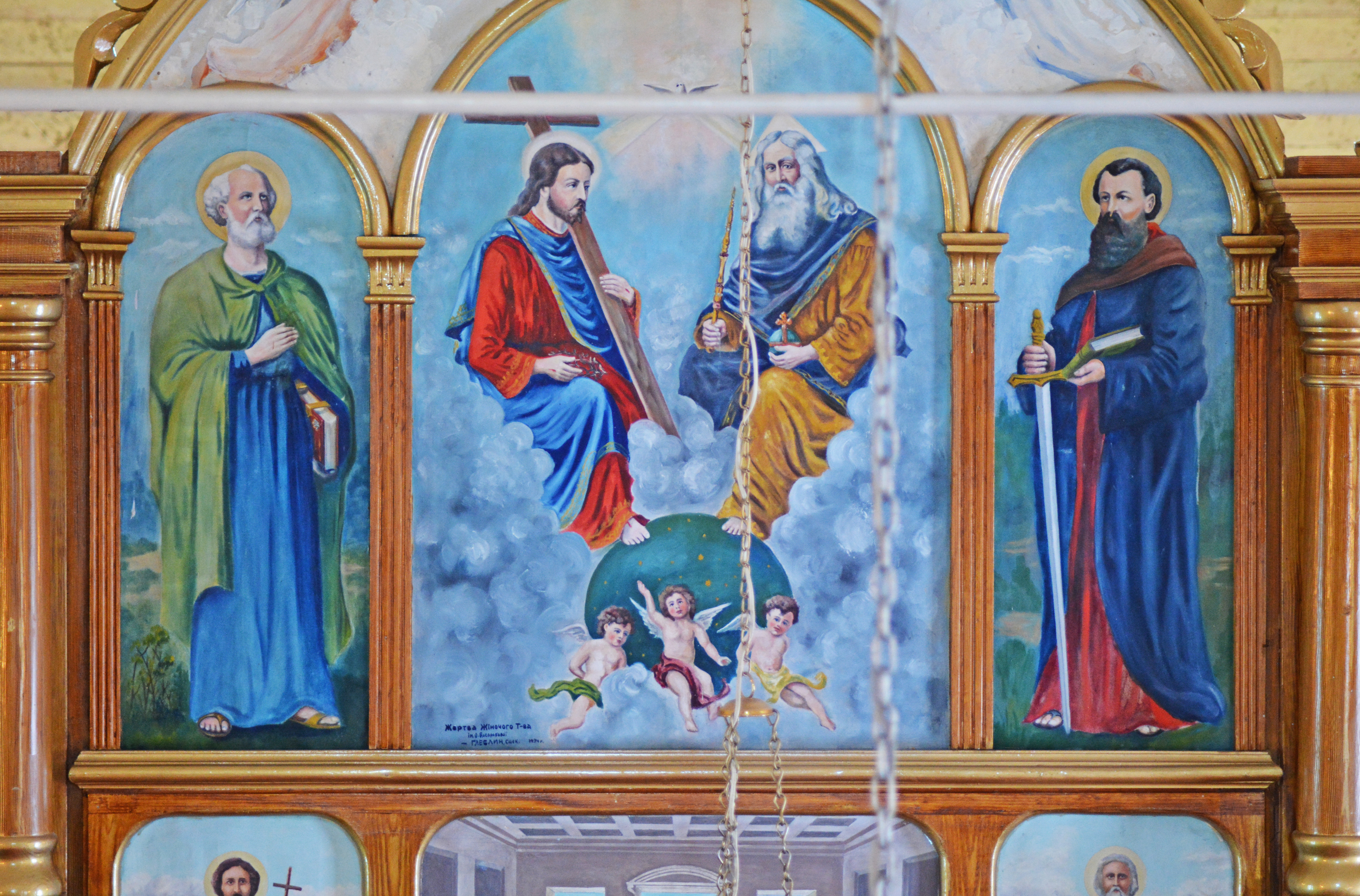 Image of an icon of the Trinity from the iconostas of Sts. Peter & Paul UOC located in Glaslyn, SK. Photo by S. Demchinsky (2017).
