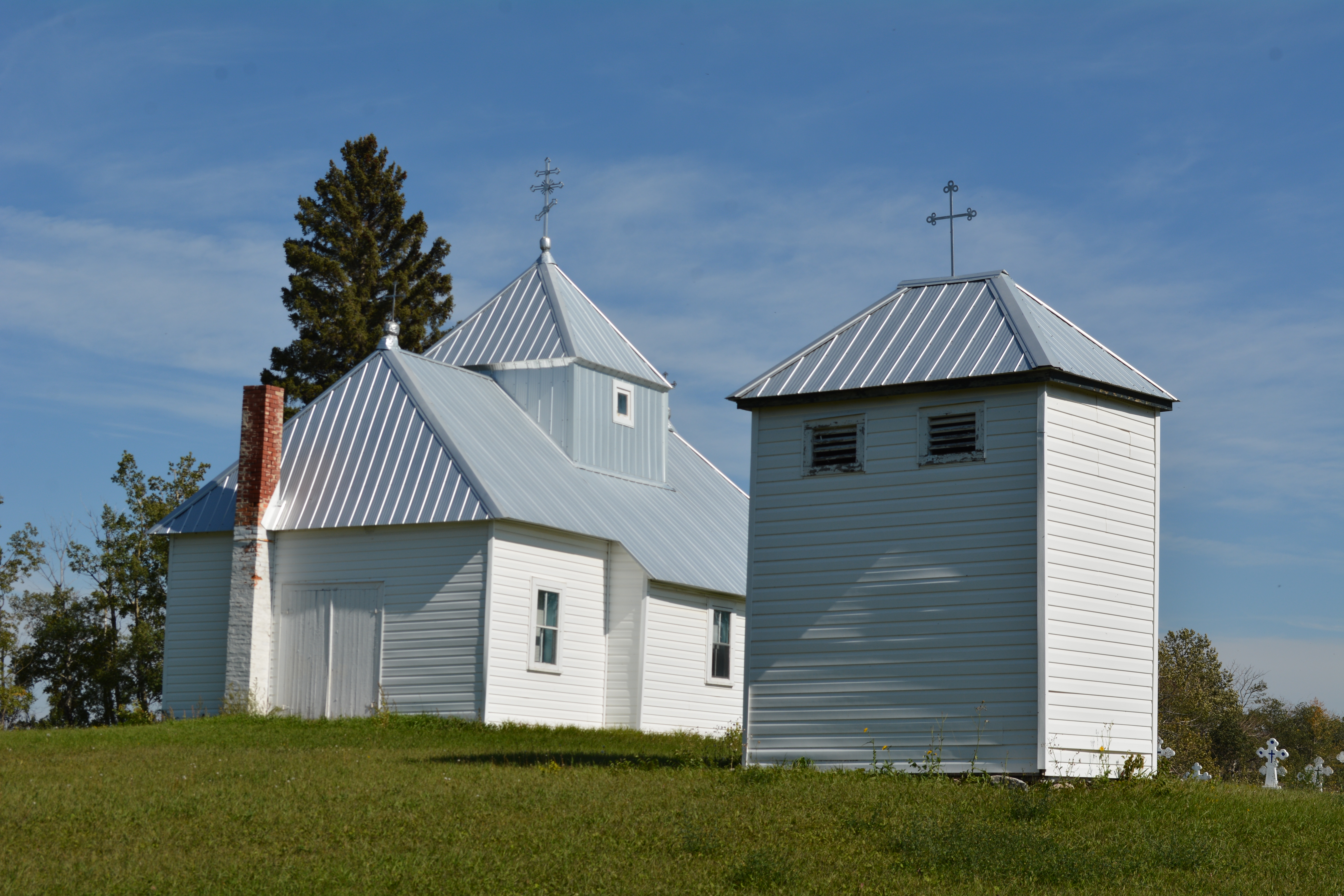 Newly renovated Sts. Peter & Paul UOC (Achtemichuck Church) located east of Hampton, SK. Photo by S. Demchinsky (2021).