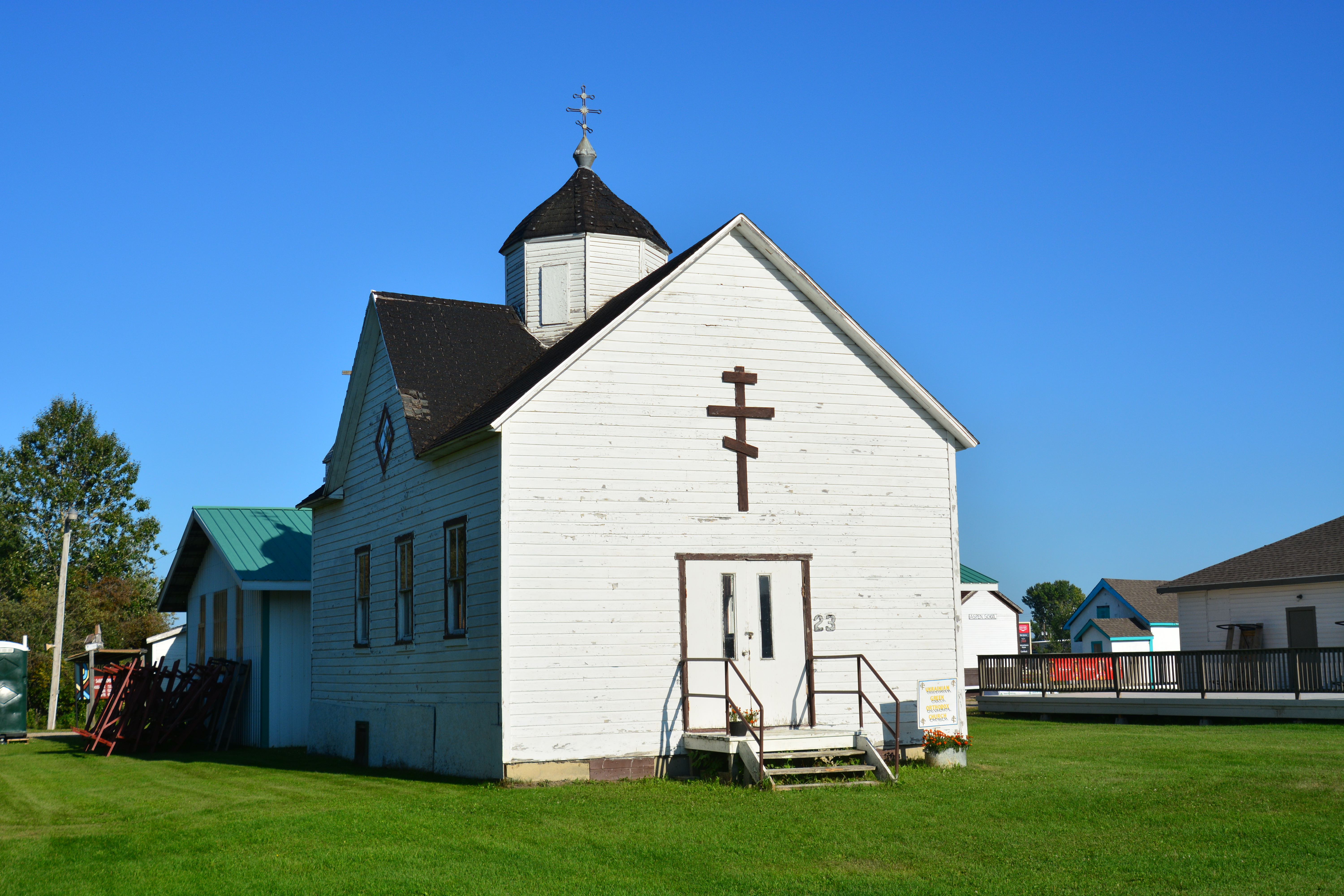 Ukrainian Orthodox Church (name unknown) located in Heritage Park in Hudson Bay, SK. Photo by S. Demchinsky (2022).
