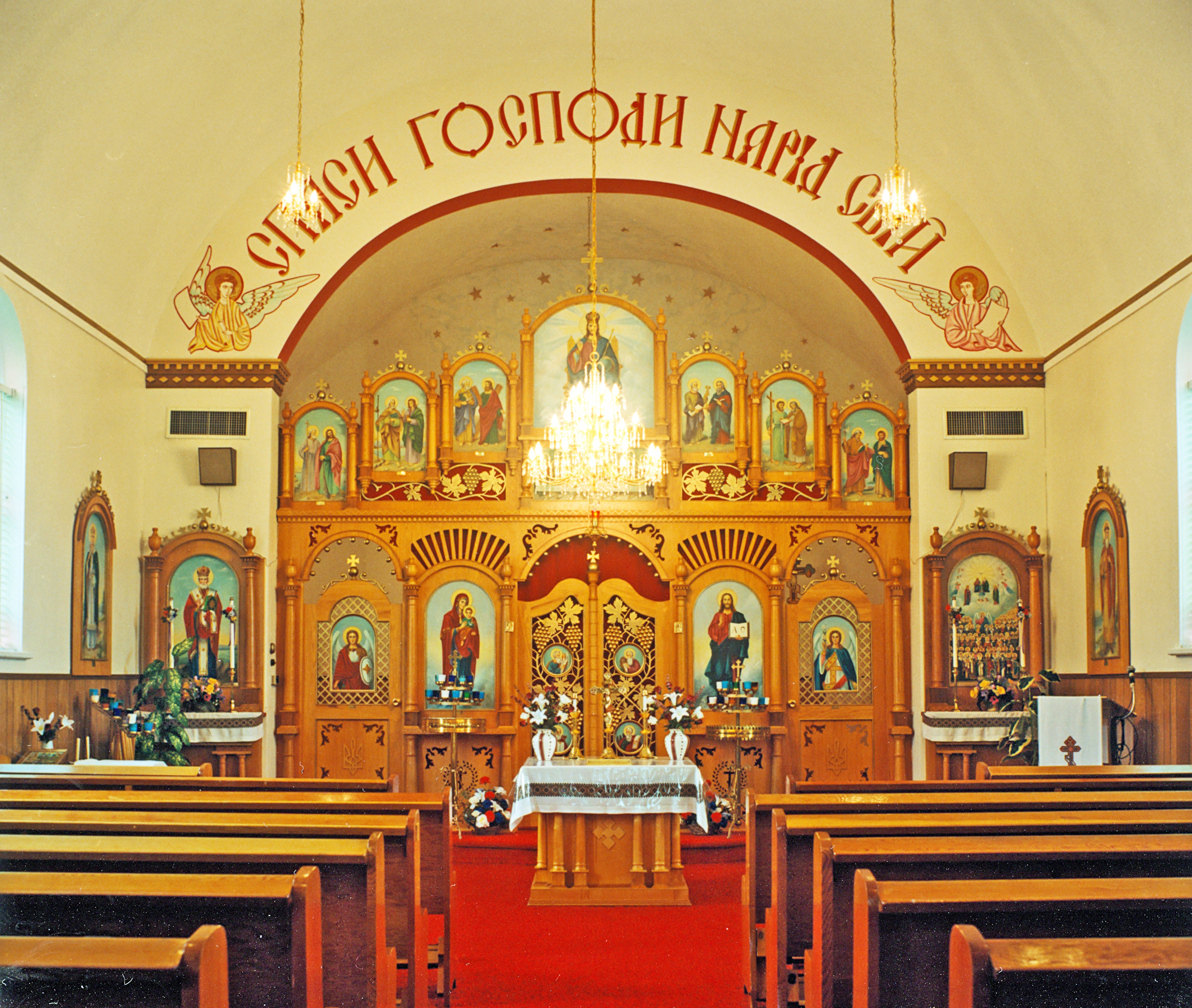 Image of the interior of All Saints UOC in Kamsack, SK. Photo by S. Demchinsky (1999).