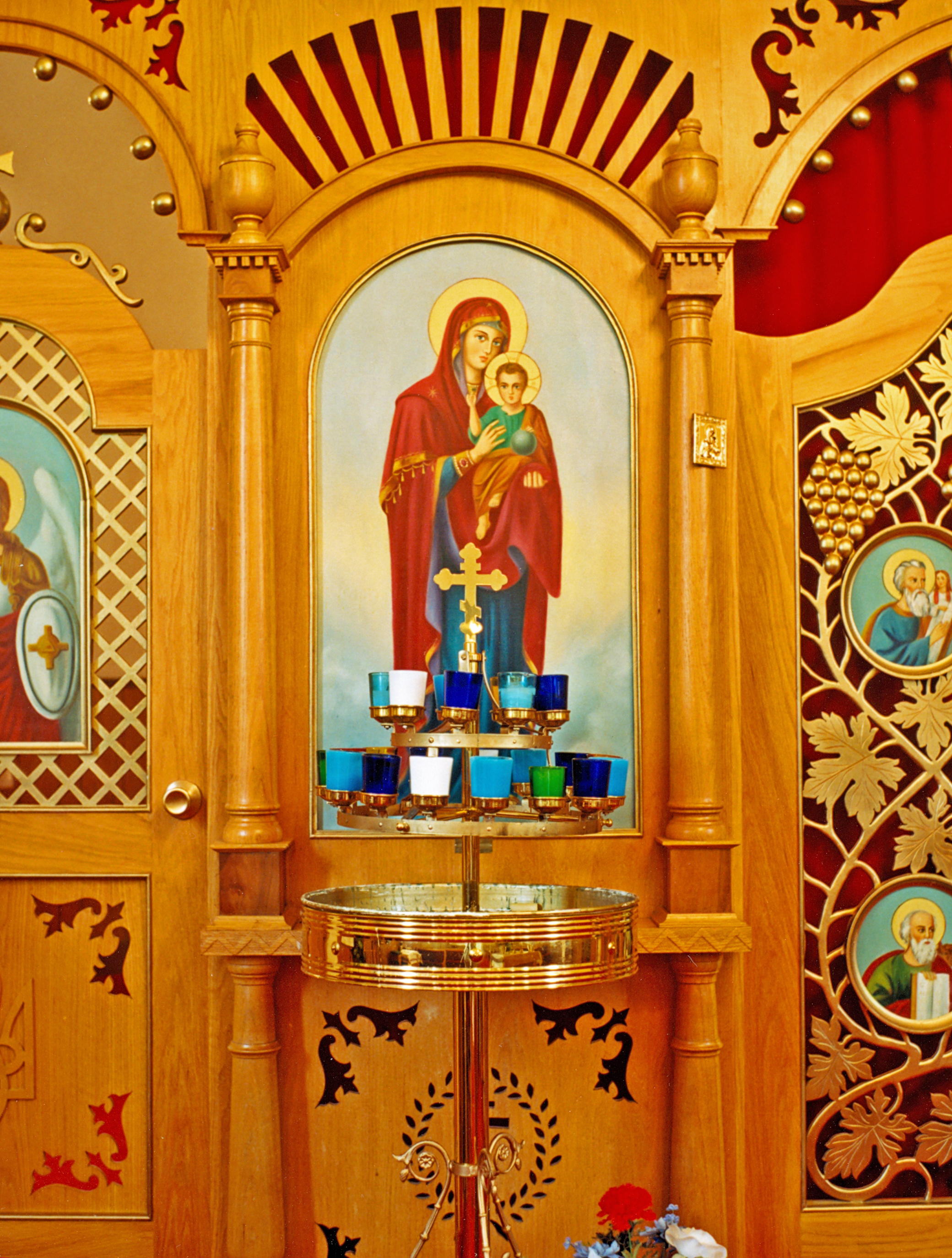 Image of the Theotokos from the iconostas of All Saints UOC in Kamsack, SK. Photo by S. Demchinsky (1999).