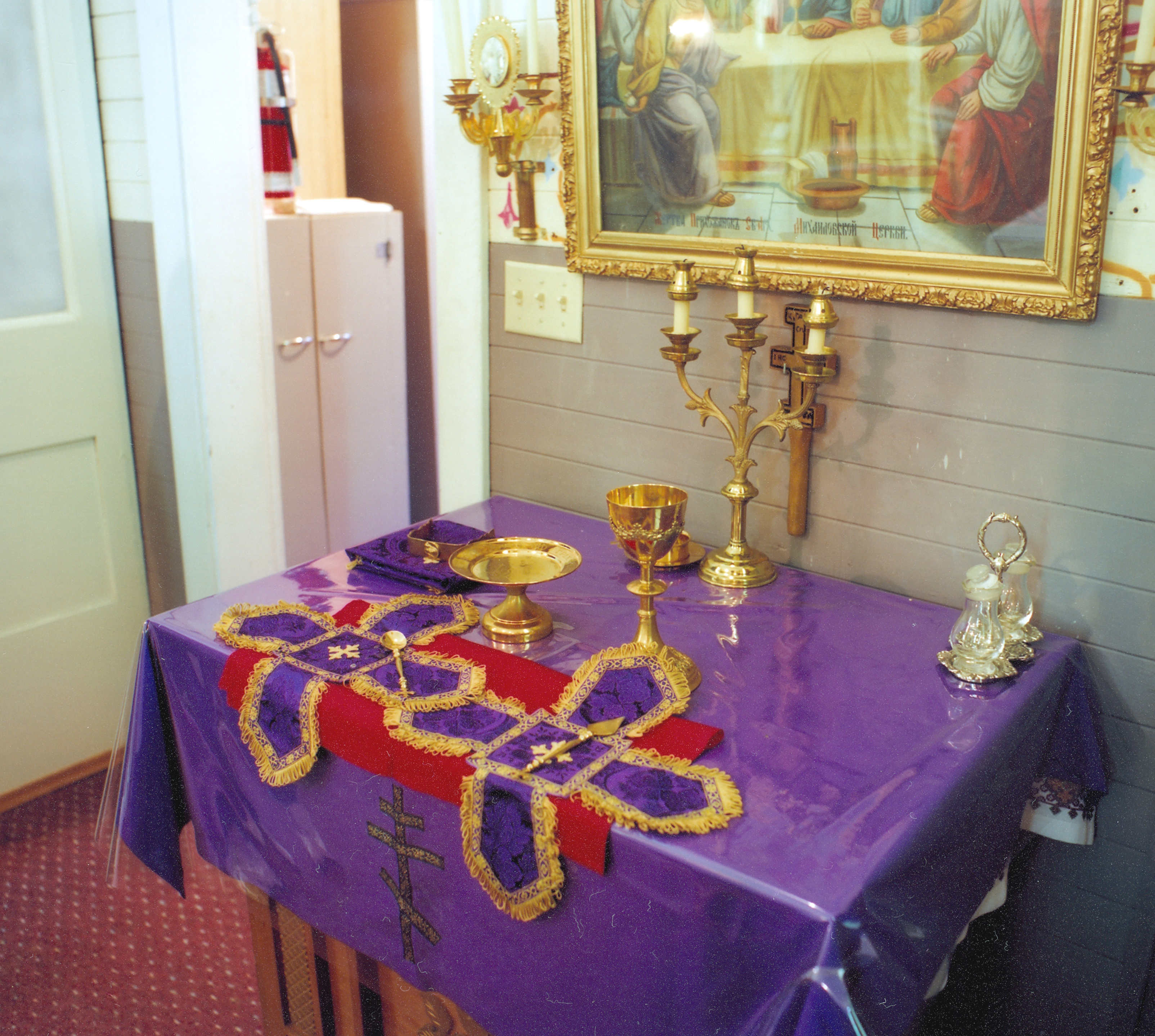The proskomidia table in St. Michael UOC, Lepine, SK. Photo by S. Demchinsky (2010).