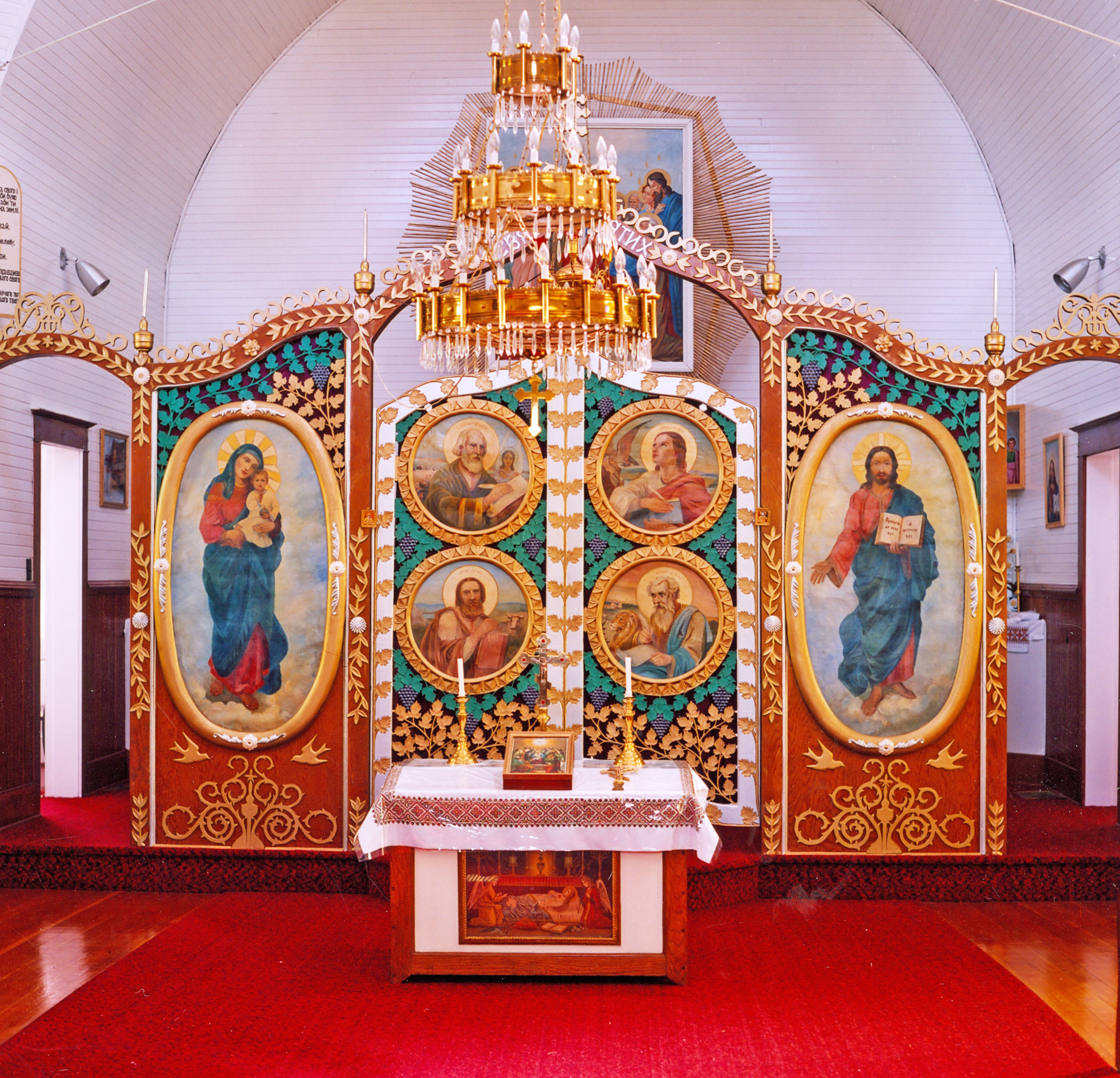 Image of the iconostas of Holy Spirit UOC at Mazeppa, SK. Photo by S. Demchinsky (2004).
