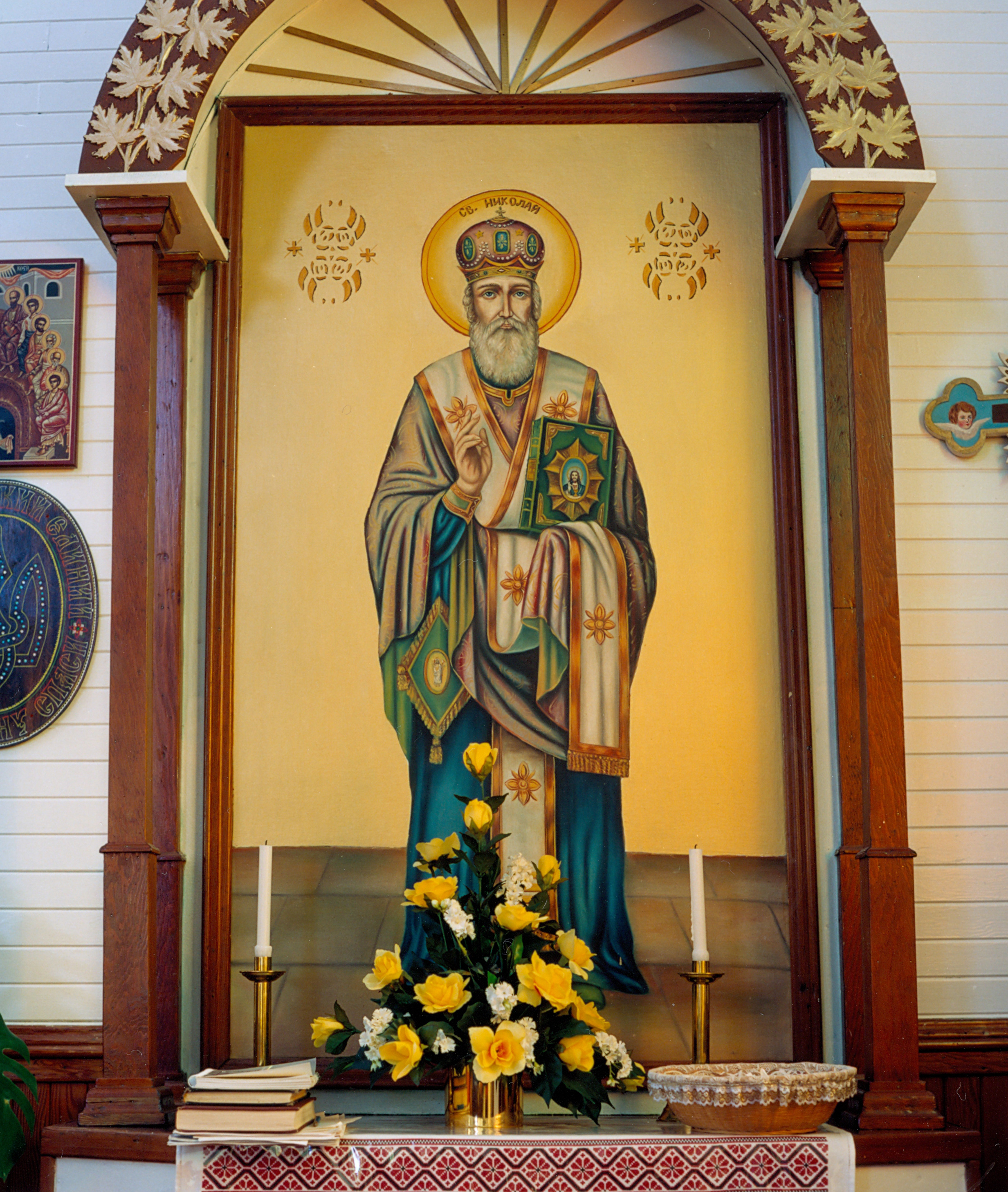 Shrine to St. Nicholas in Holy Spirit UOC at Mazeppa, SK. Photo by S. Demchinsky (2004).