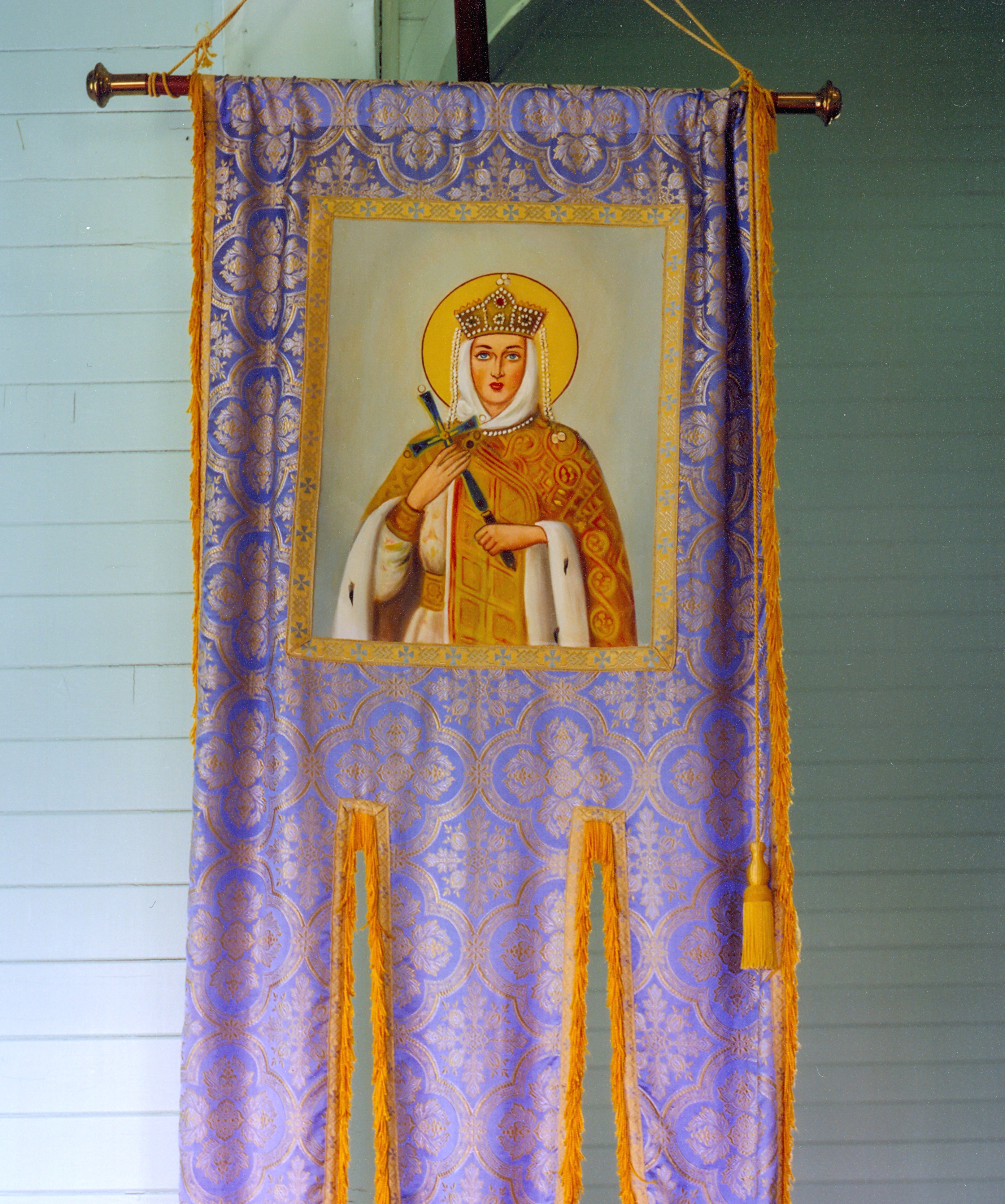 Image of a banner featuring St. Olha in Dormition of St. Mary UOC near Meacham, SK. Photo by S. Demchinsky (2010).