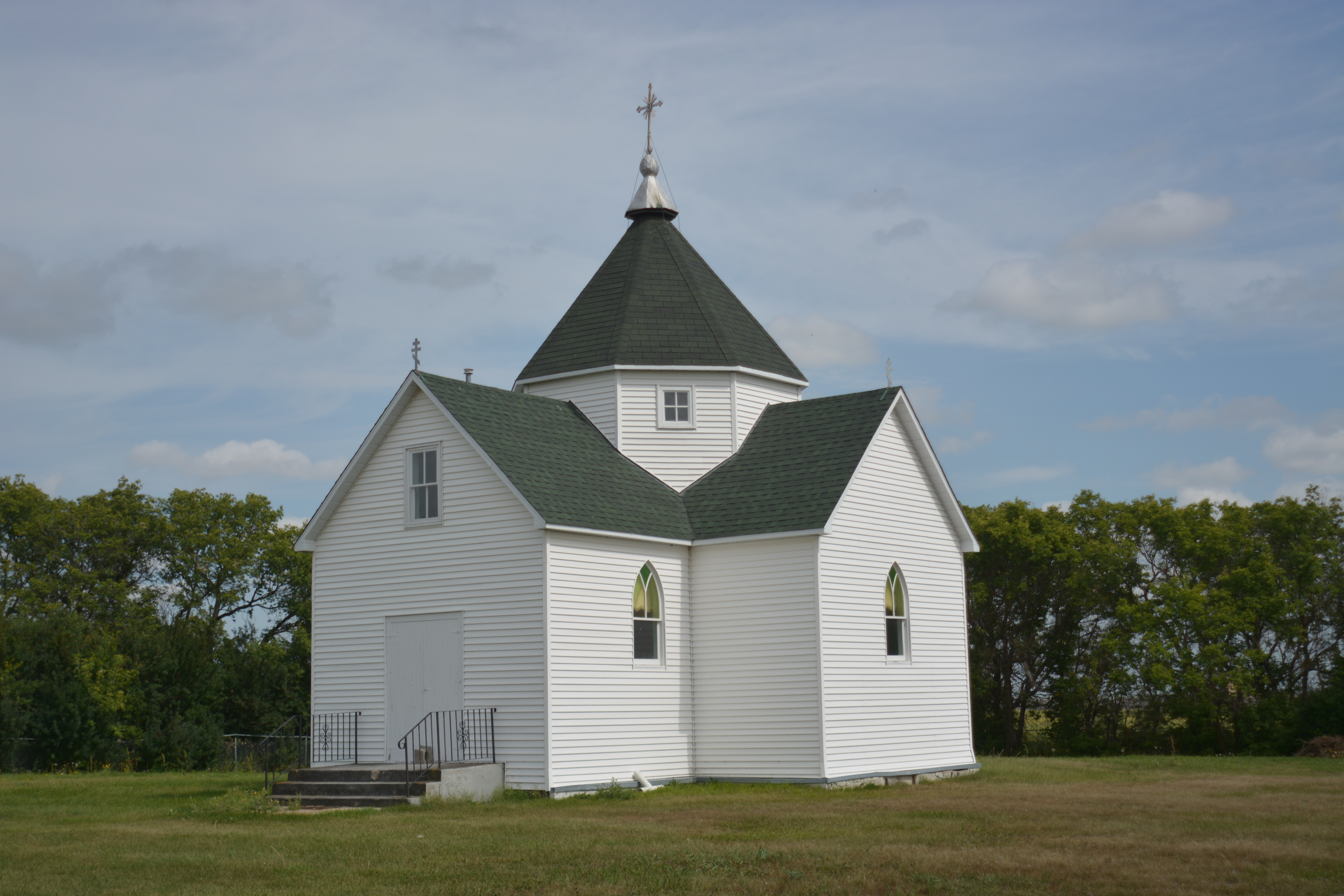 Image of the exterior of Dormition of St. Mary UOC near Meacham, SK. Photo by S. Demchinsky (2022).