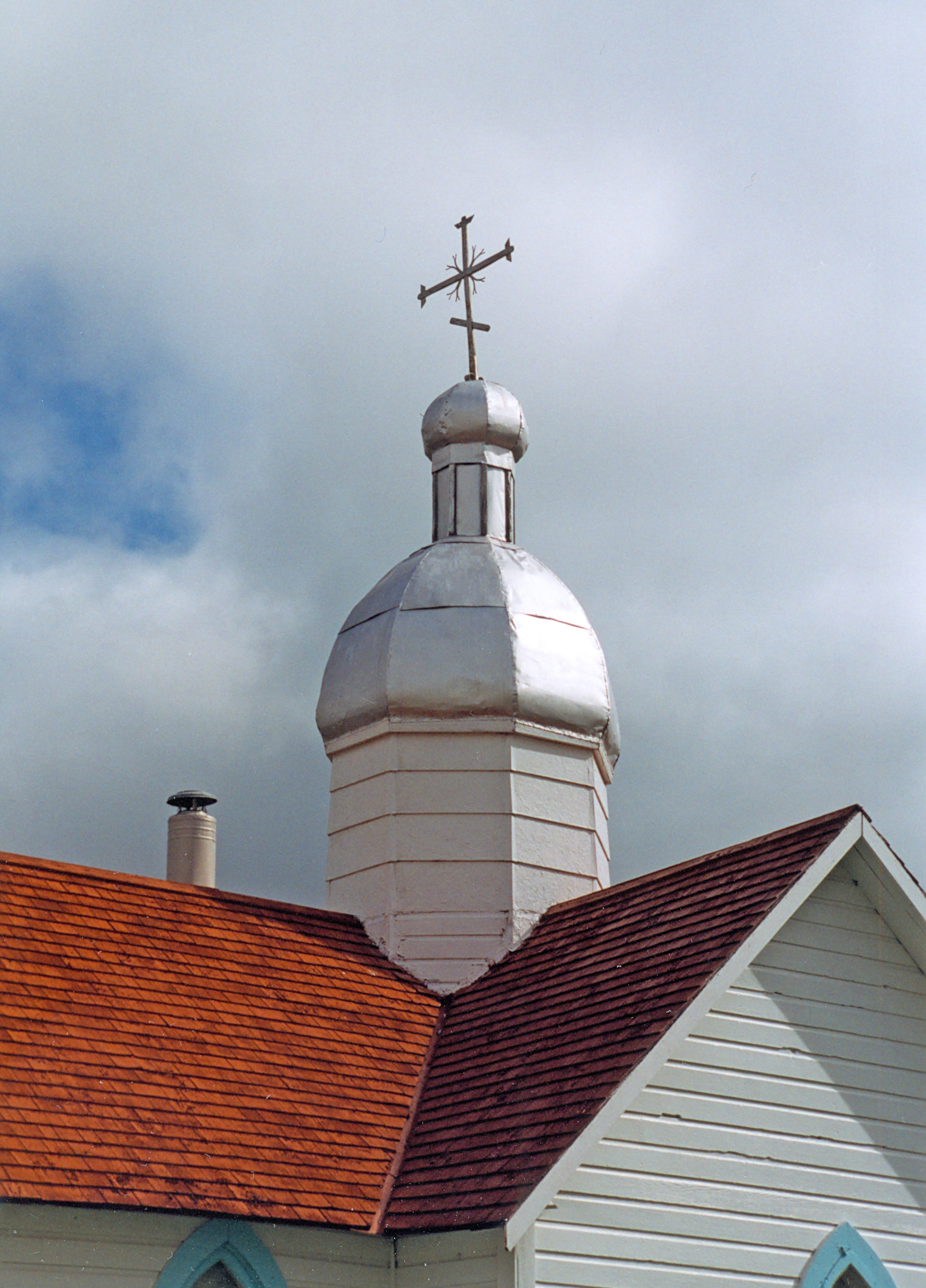 Detail of the central cupola of Holy Spirit UOC at the North Battleford Western Development Museum in North Battleford, SK. Photo by S. Demchinsky (1999).