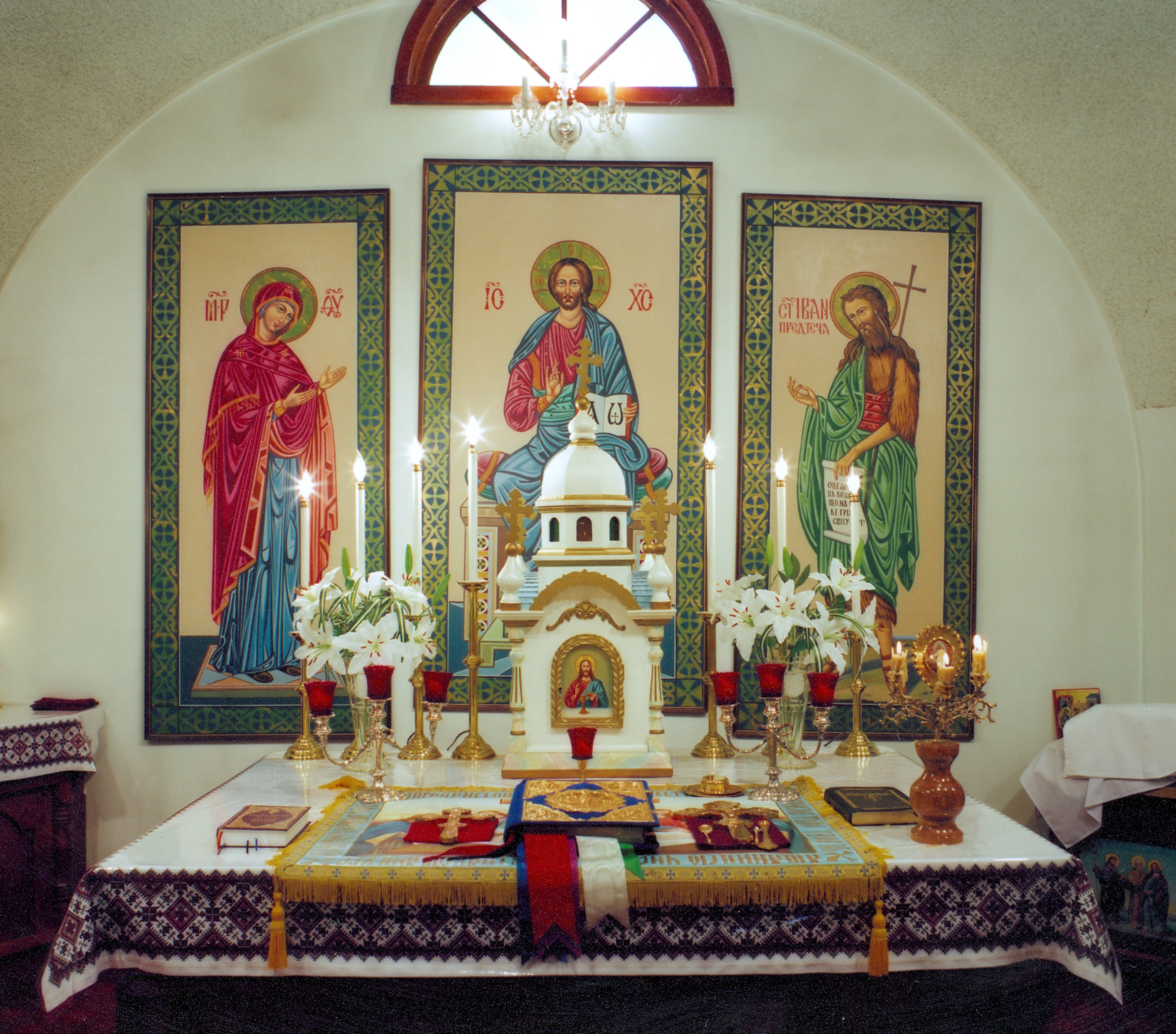 The altar and Diesis icons in the sanctuary of St. John the Baptist UOC in North Battleford, SK. Photo by S. Demchinsky (2010).