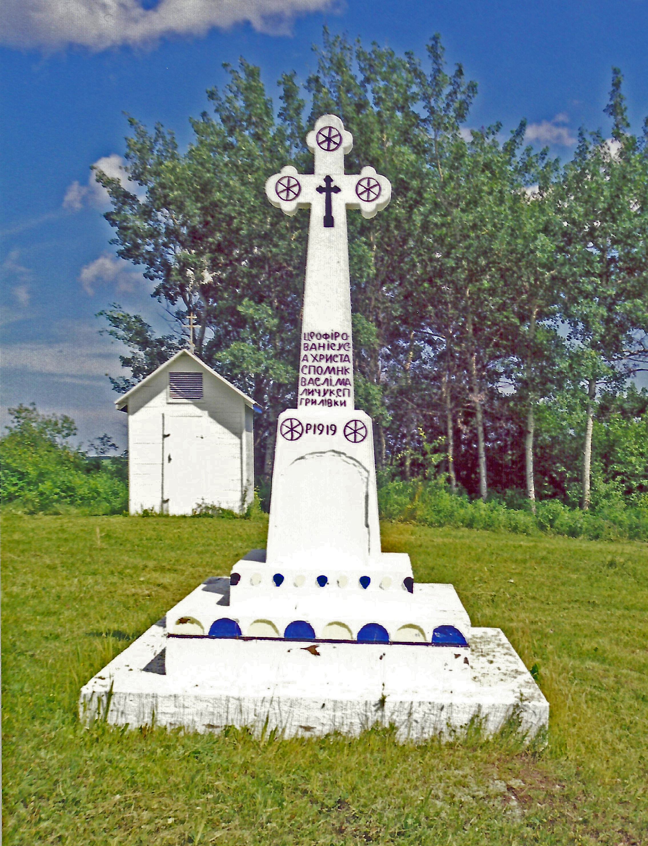 Image of the memorial cross for St. Elias UOC, near Parkerview, SK. Photo by S. Demchinsky (1998).