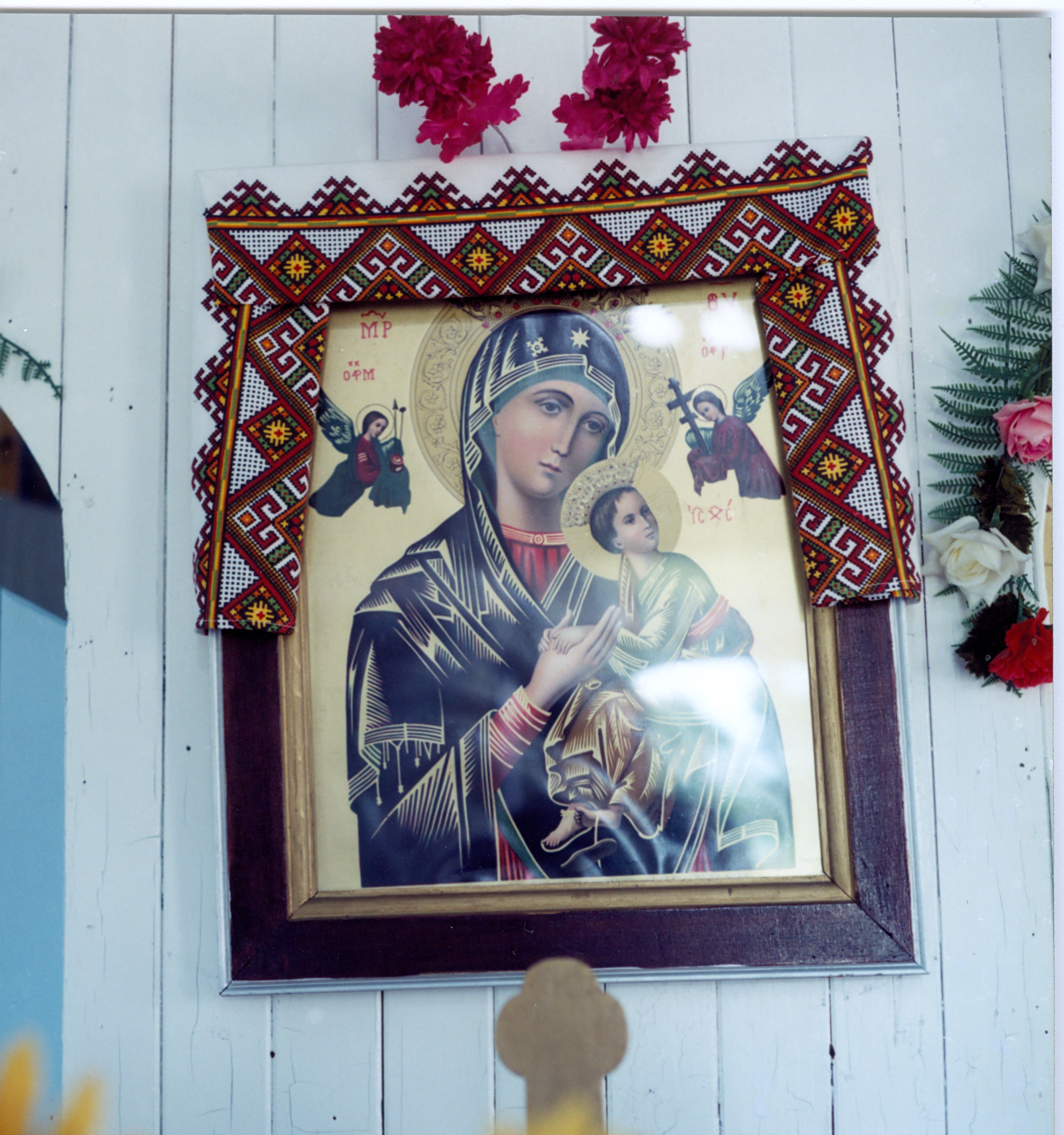 Image of Theotokos on the iconostas of St. Elias UOC near Parkerview, SK. Photo by S. Demchinsky (1998).