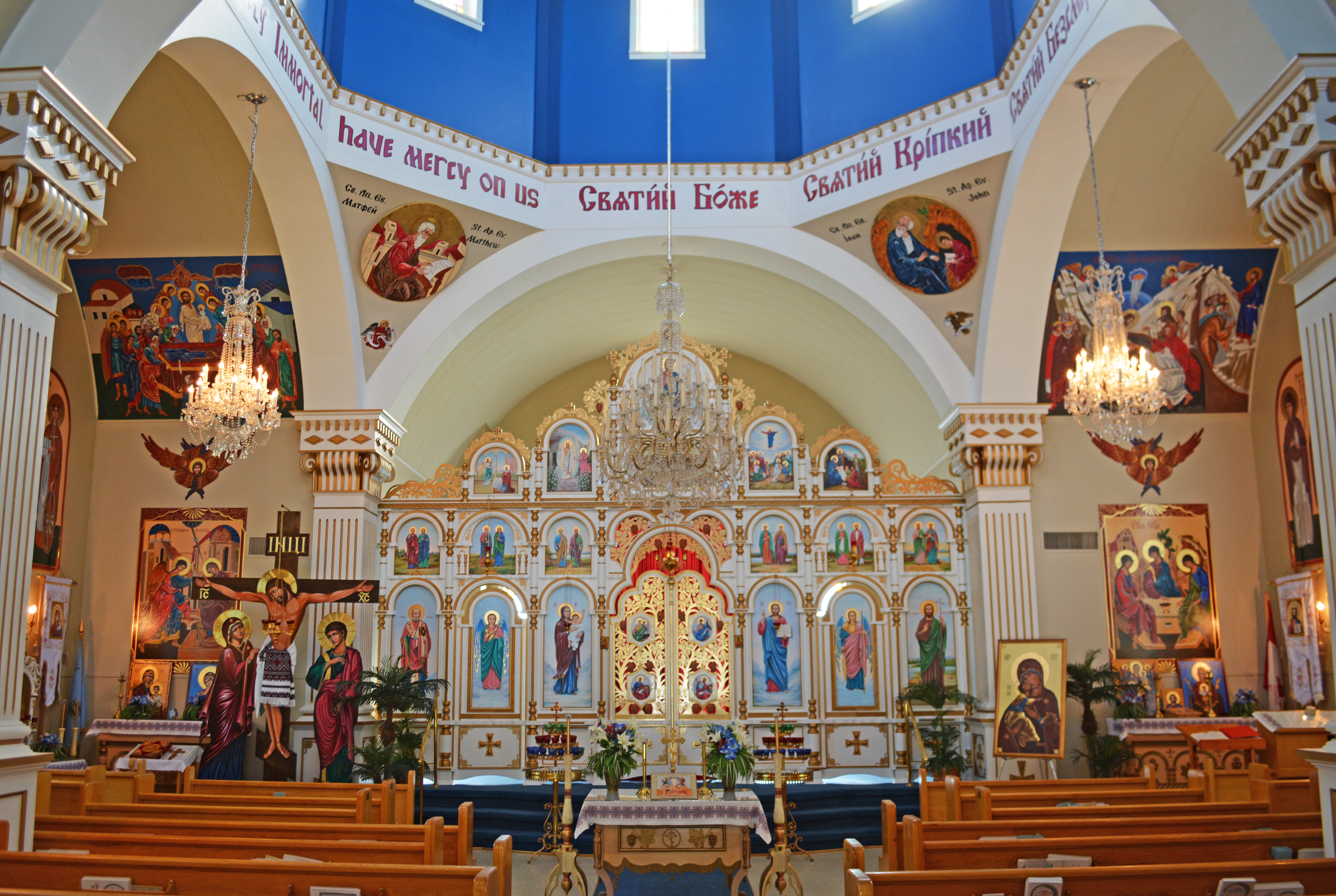 The interior of Holy Trinity UOC in Prince Albert, SK. Photo by S. Demchinsky (2017).