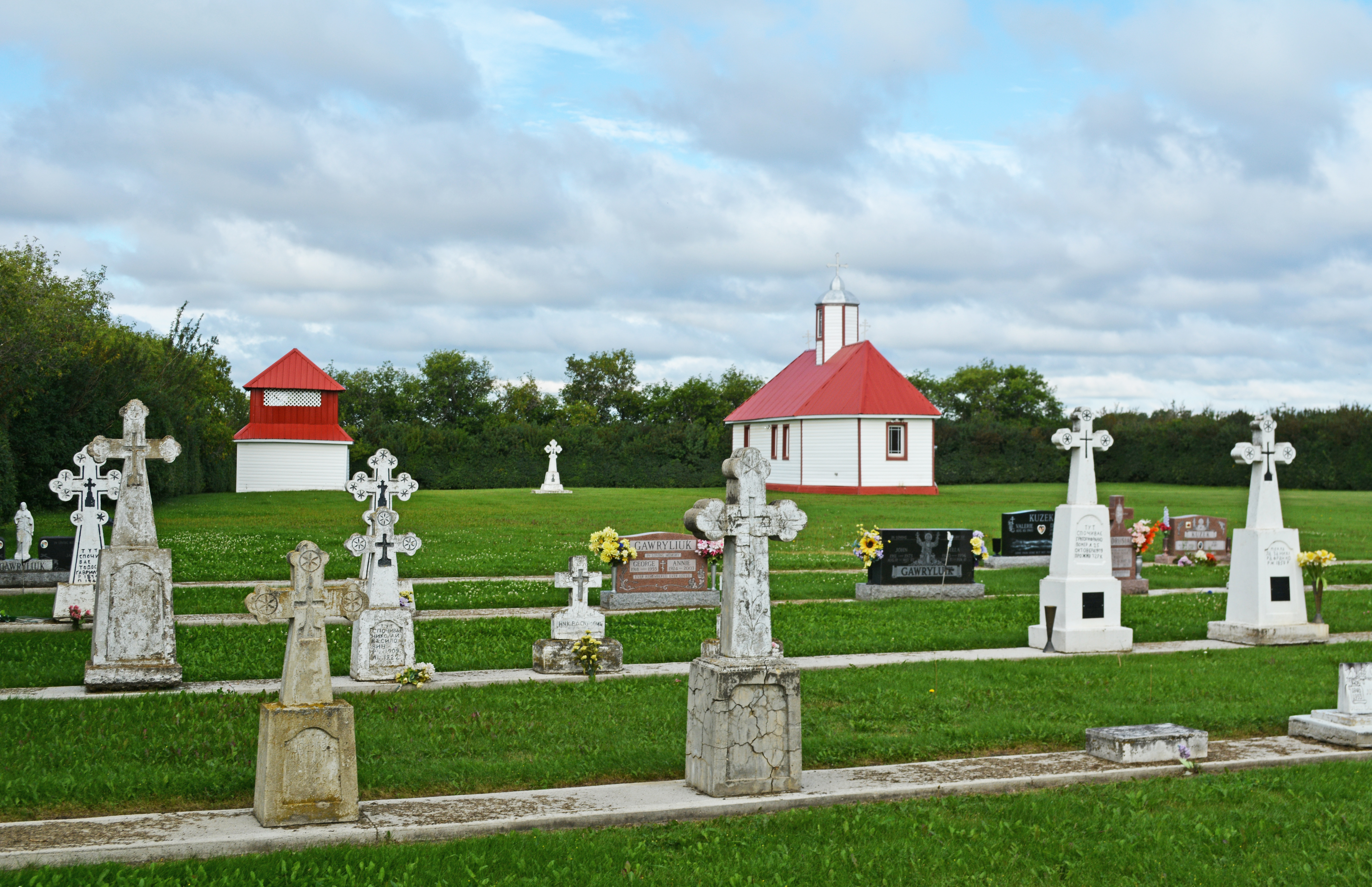 St. John the Baptist UOC, as seen from the cemetery, at Riverside, SK. Photo by S. Demchinsky (2014).