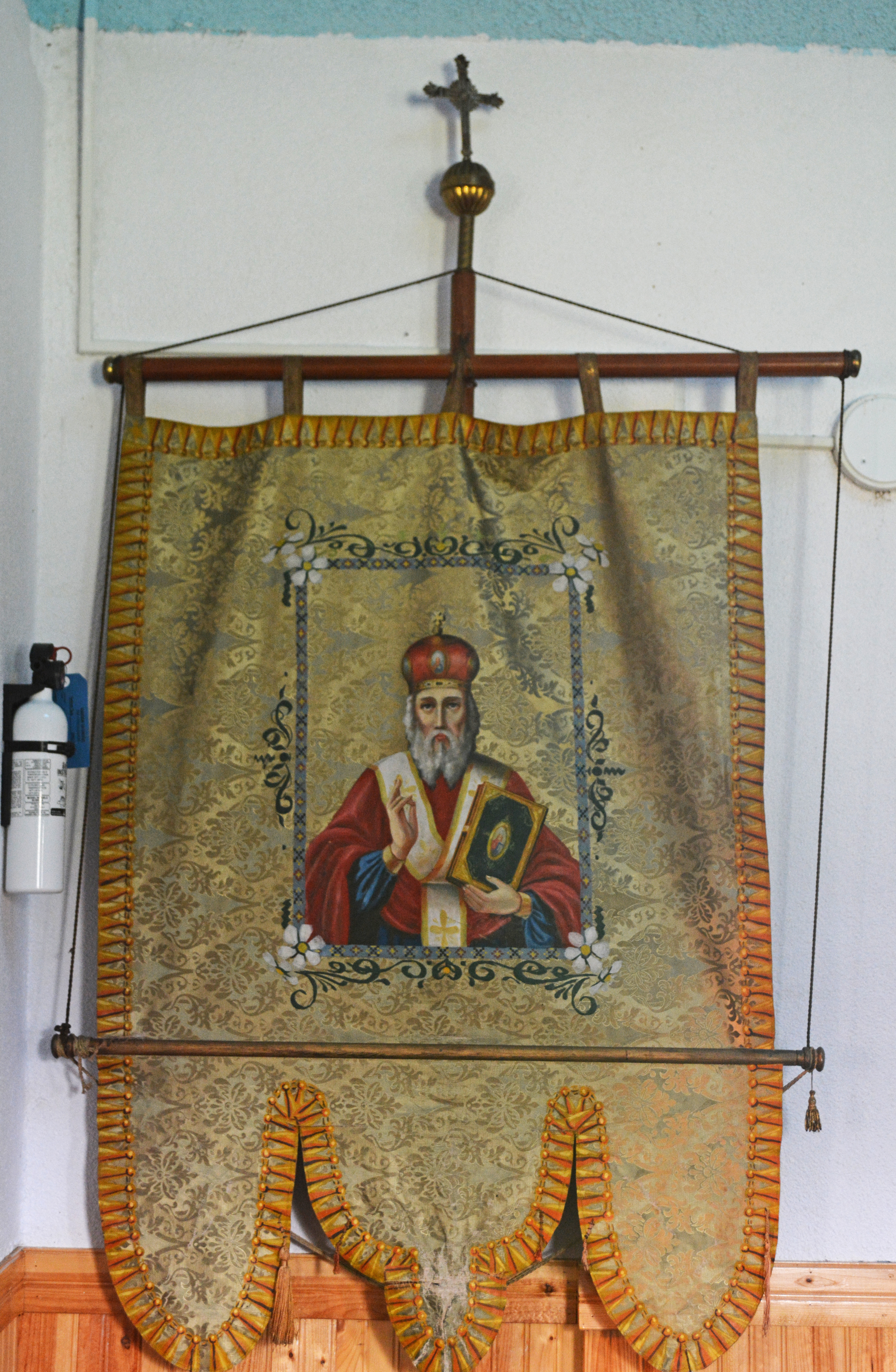 A banner with an icon of St. Nicholas in St. John the Baptist UOC at Riverside, SK. Photo by S. Demchinsky (2014).