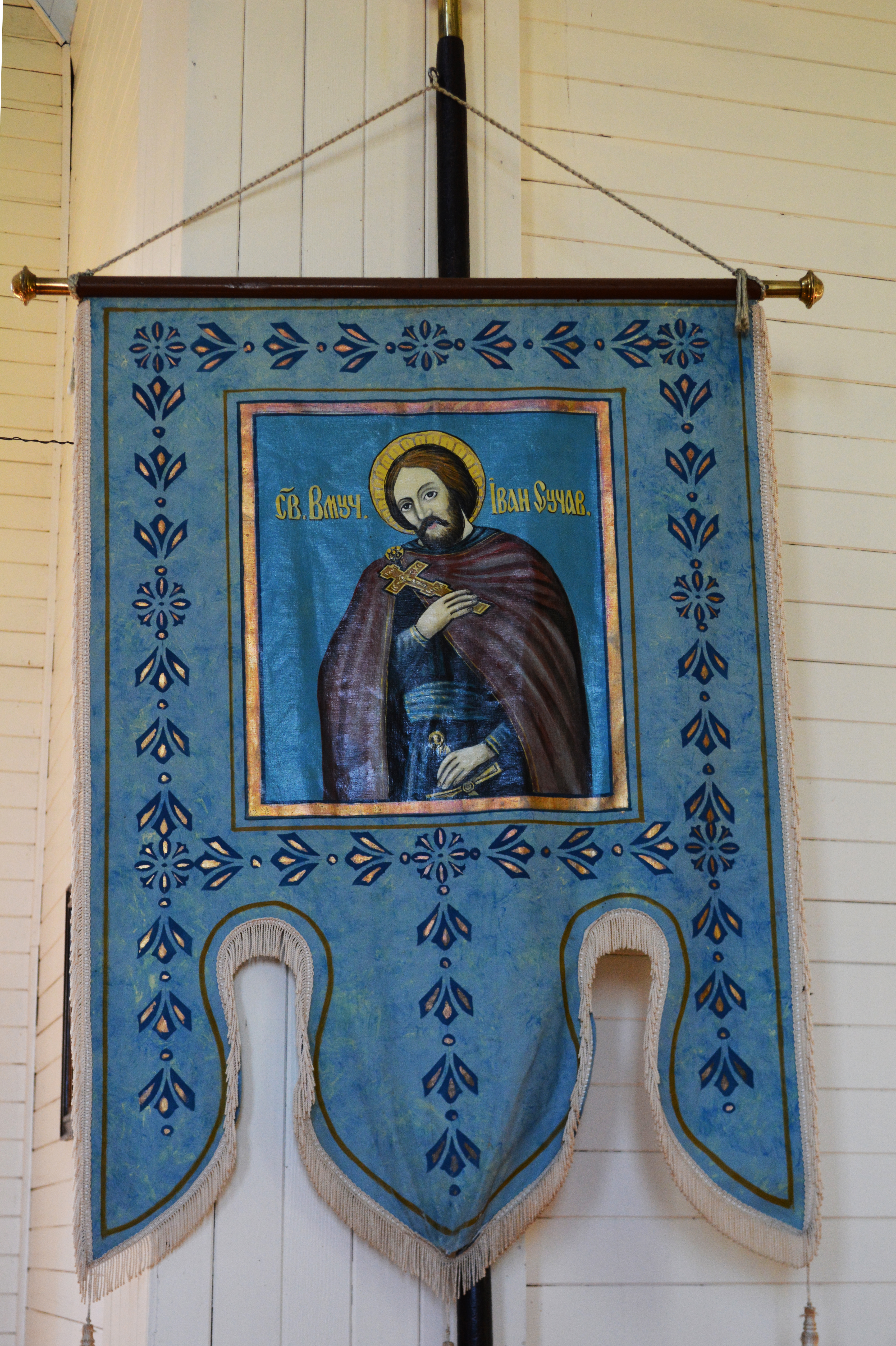 Banner featuring an icon of St. Ivan Suchavsky in Holy Trinity UOC, Samburg, SK. Photo by S. Demchinsky (2017).