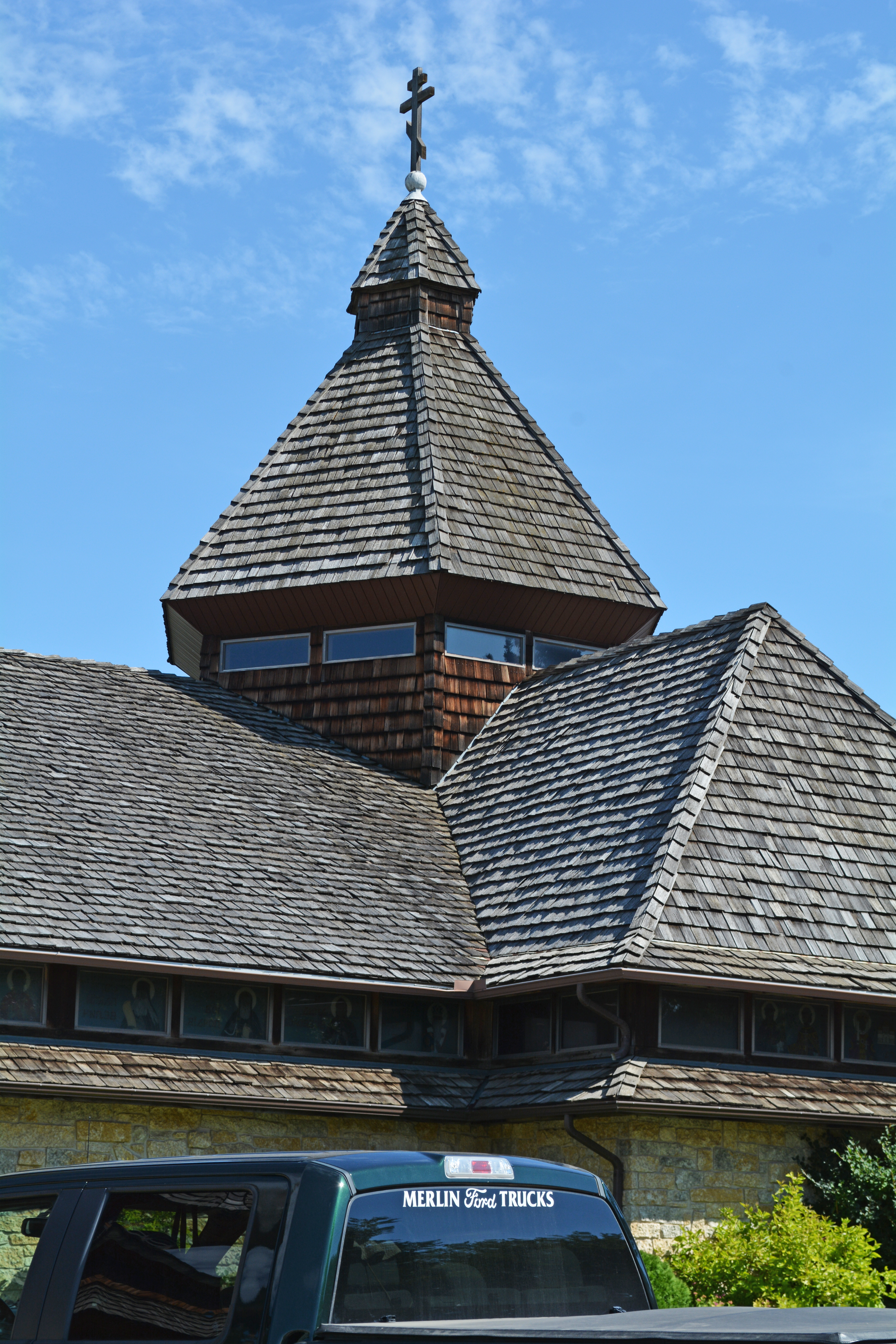 Detail of the pyramidal dome of All Saints UOC in Saskatoon, SK. Photo by S. Demchinsky (2017).