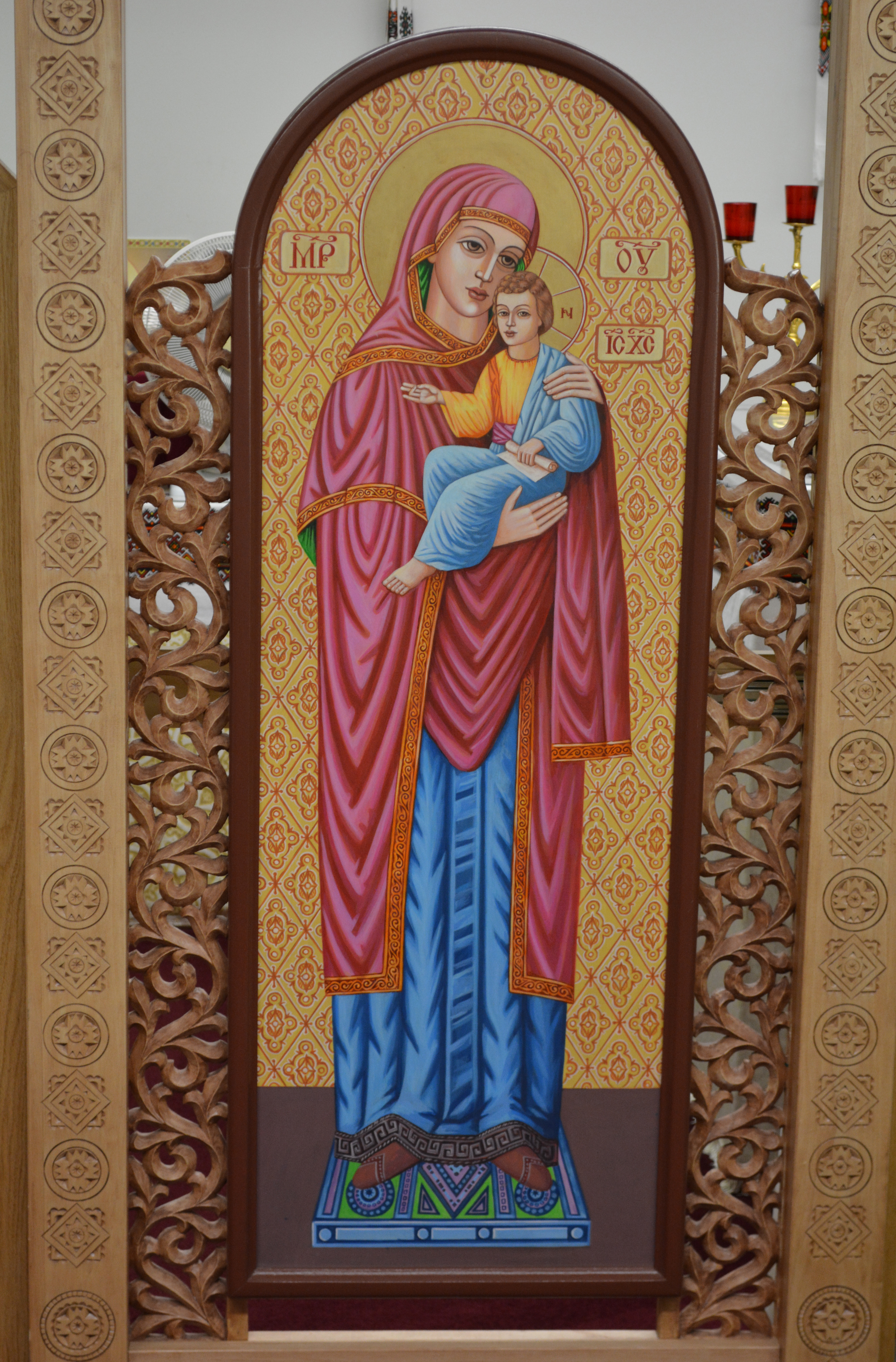 The Theotokos on the iconostas of St. Ilarion Chapel, located in the Metropolitan Ilarion Residence in Saskatoon, SK. Photo by S. Demchinsky (2017).
