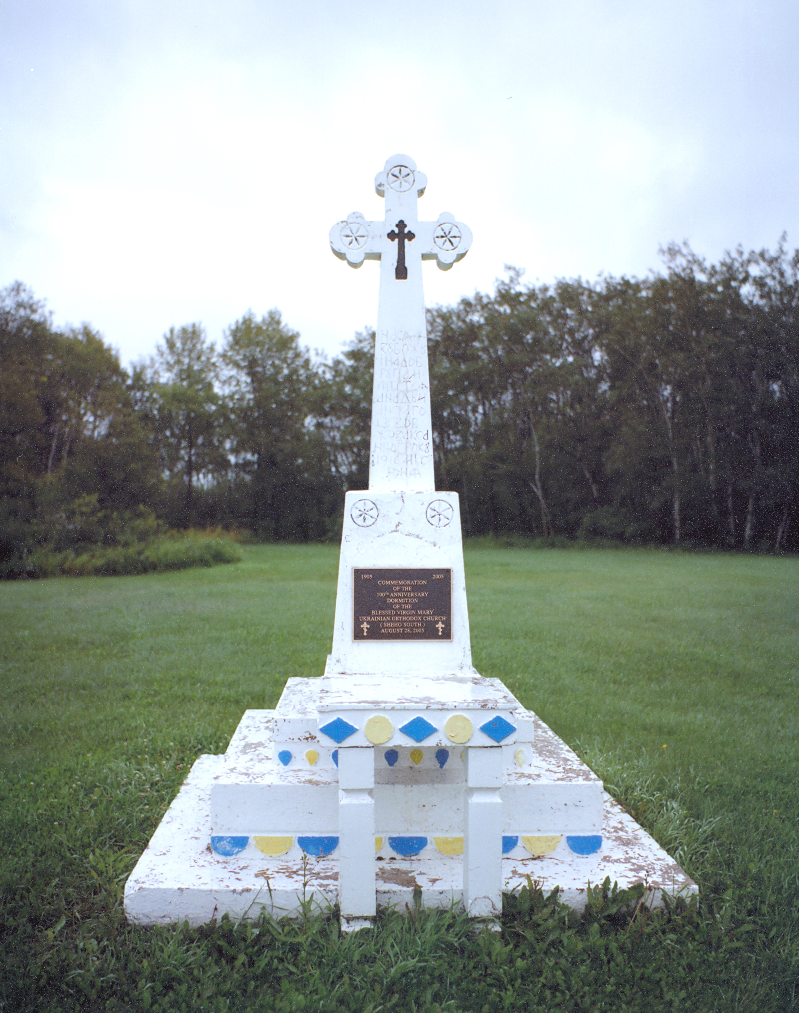 The memorial cross with service table at Dormition of St. Mary UOC, south of Sheho, SK. Photo by S. Demchinsky (2010)