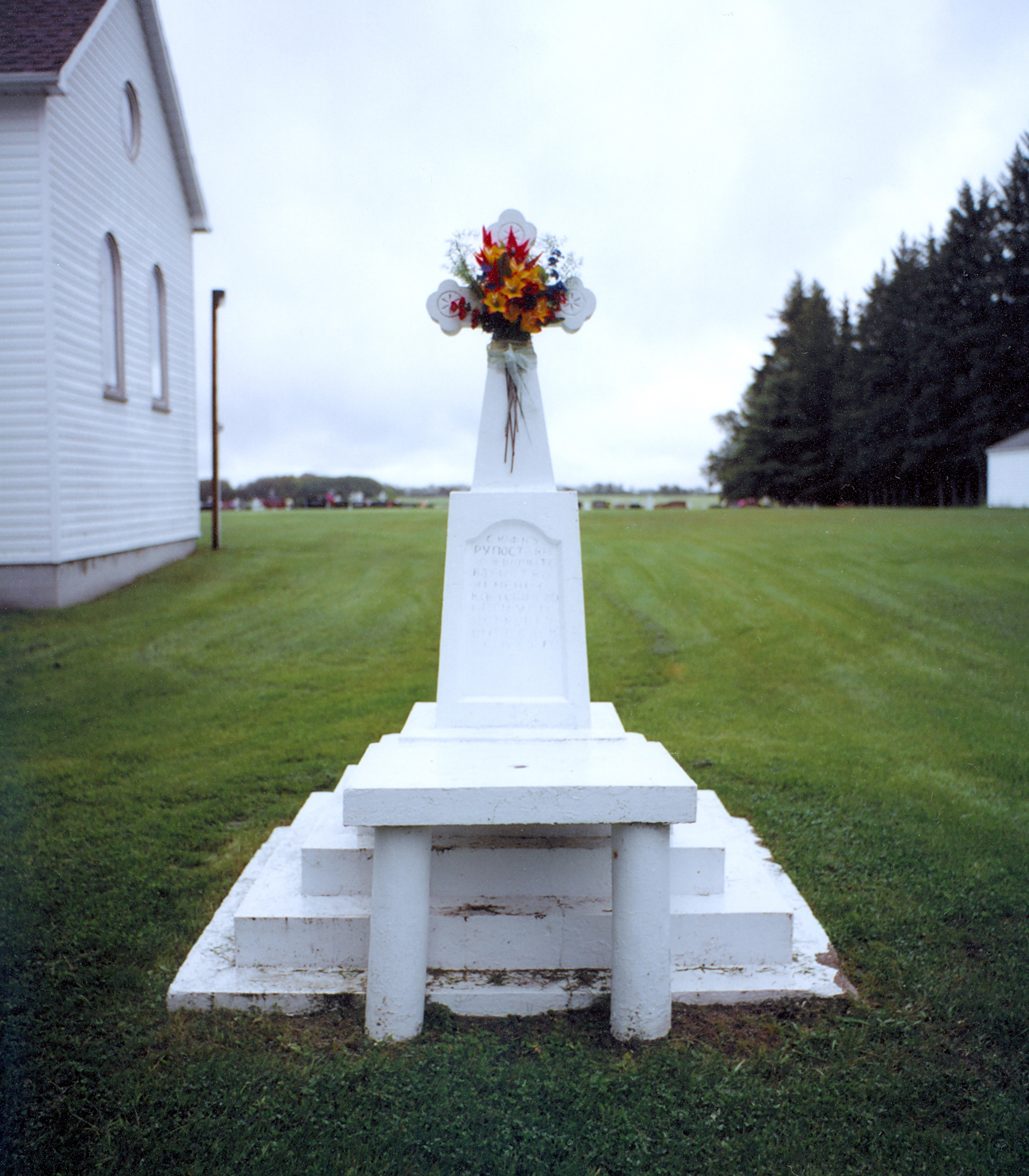 The memorial cross and service table for Holy Trinity UOC in Sheho, SK. Photo by S. Demchinsky (2010).