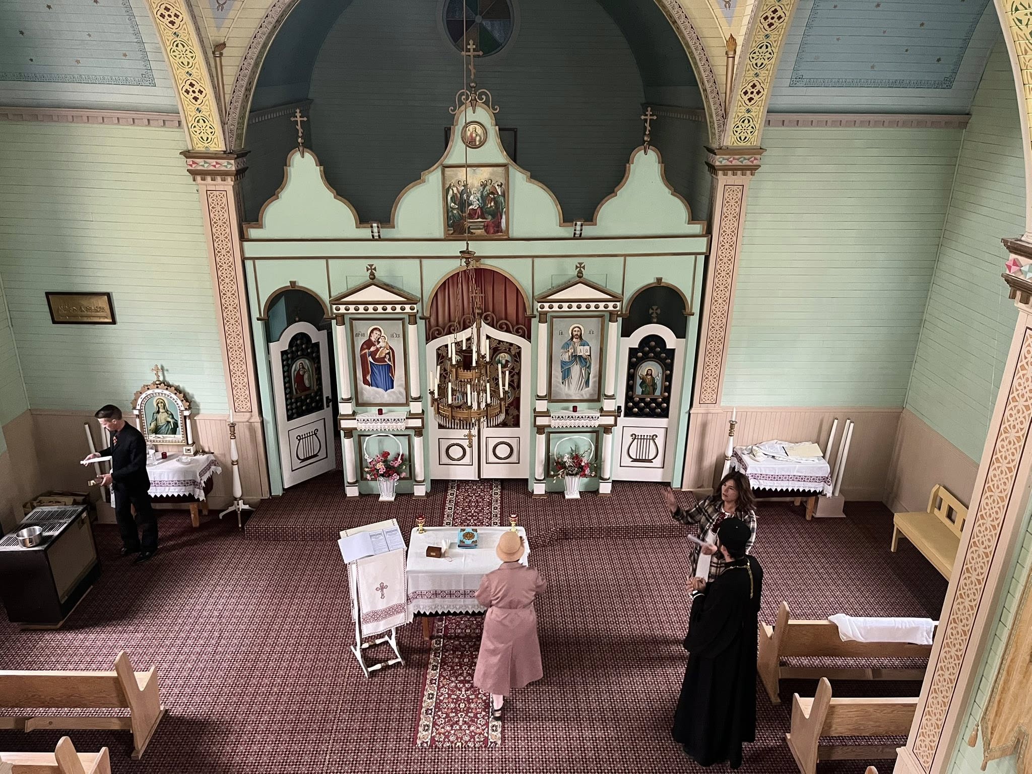 The interior as seen from the choir loft of St. Demetrius UOC at Whitebeech, SK. Photo by Kristen Fedorchuk (2025).