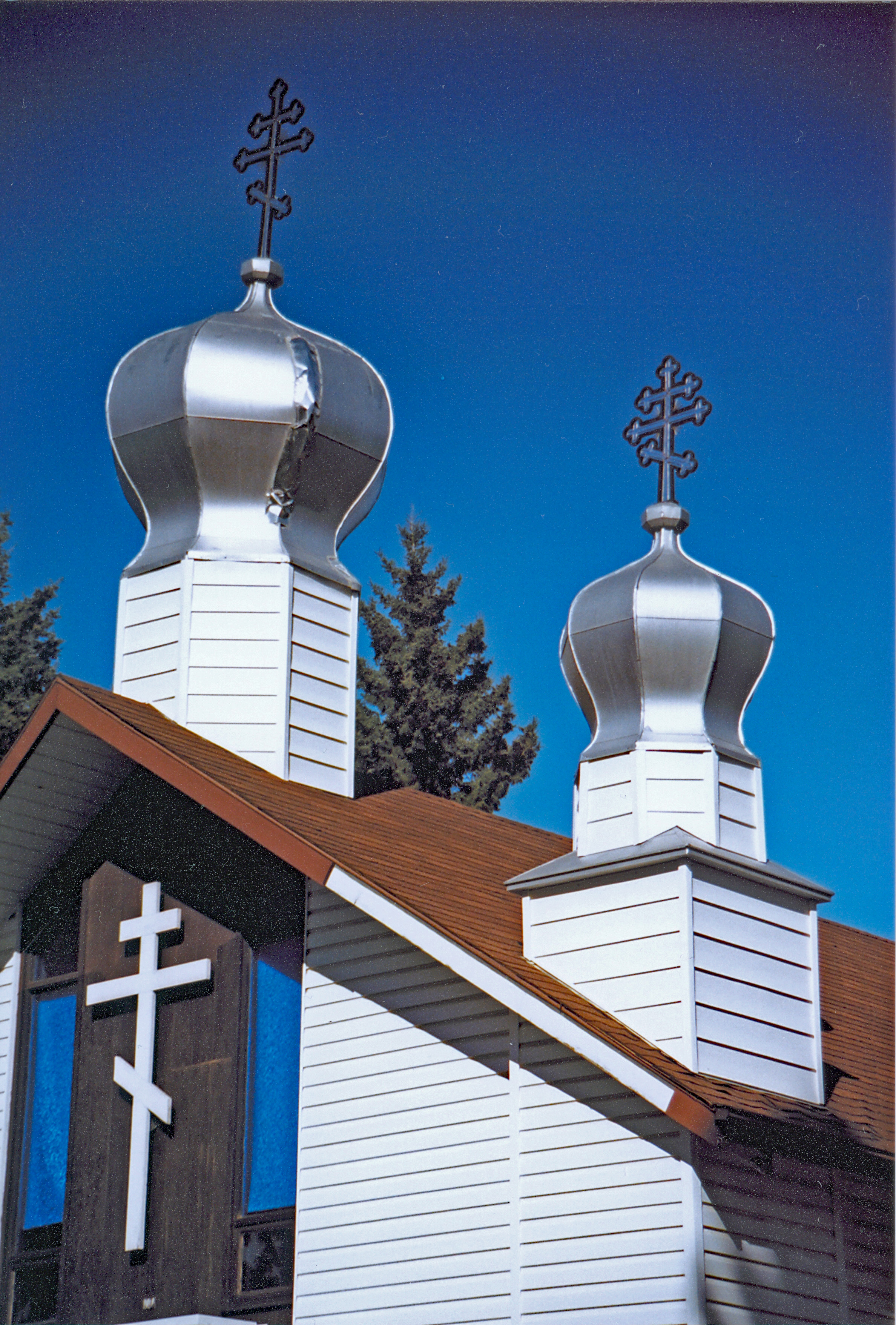 Detail of the cupolas on the Nativity of St. Mary UOC in Wynyard, SK. Photo by S. Demchinsky (2010).